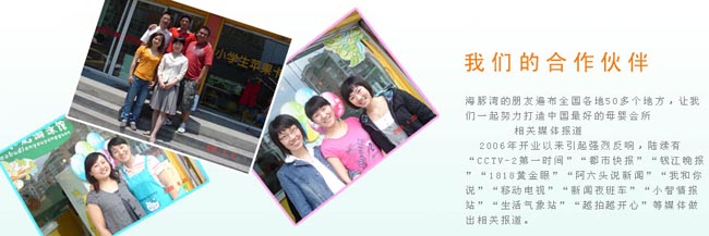 06年杭州第一家兒童專業(yè)理發(fā)服務(wù)機構(gòu)開張營業(yè),經(jīng)過4年的發(fā)展成為杭州嬰幼兒服務(wù)最大最專業(yè)連鎖機構(gòu)之一,迄今為止已經(jīng)在全國各地?fù)碛?0多家合作店,第一家引進來自太空的水處理系統(tǒng)--美國中央軟水處理系統(tǒng),第一家引進開發(fā)了適合1到6歲寶寶的幼兒游泳項目,第一家擁有正規(guī)游泳師證書的嬰兒游泳館,第一家擁有嬰兒沖浪游泳的游泳館,第一家使用恒溫設(shè)備的游泳館。經(jīng)過幾年的發(fā)展,讓我們更懂得珍惜和感恩,愛孩子像愛自己的寶貝!