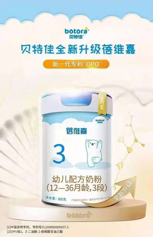 您所在位置:首頁(yè)>火爆嬰童網(wǎng)奶粉新品推薦>貝特佳蓓維嘉幼兒配方奶粉(12-36月齡,3段)