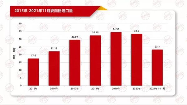 與零售價(jià)緩慢上漲相反的是今年奶粉產(chǎn)量呈下滑趨勢(shì)。據(jù)國(guó)家統(tǒng)計(jì)局?jǐn)?shù)據(jù),2021年1-10月,我國(guó)奶粉產(chǎn)量76.25萬(wàn)噸,同比下降2.19%;而據(jù)海關(guān)數(shù)據(jù),2021年1-11月,我國(guó)嬰配粉進(jìn)口量23.3萬(wàn)噸,較去年下降24.1%,進(jìn)口嬰配粉下滑較為嚴(yán)重。